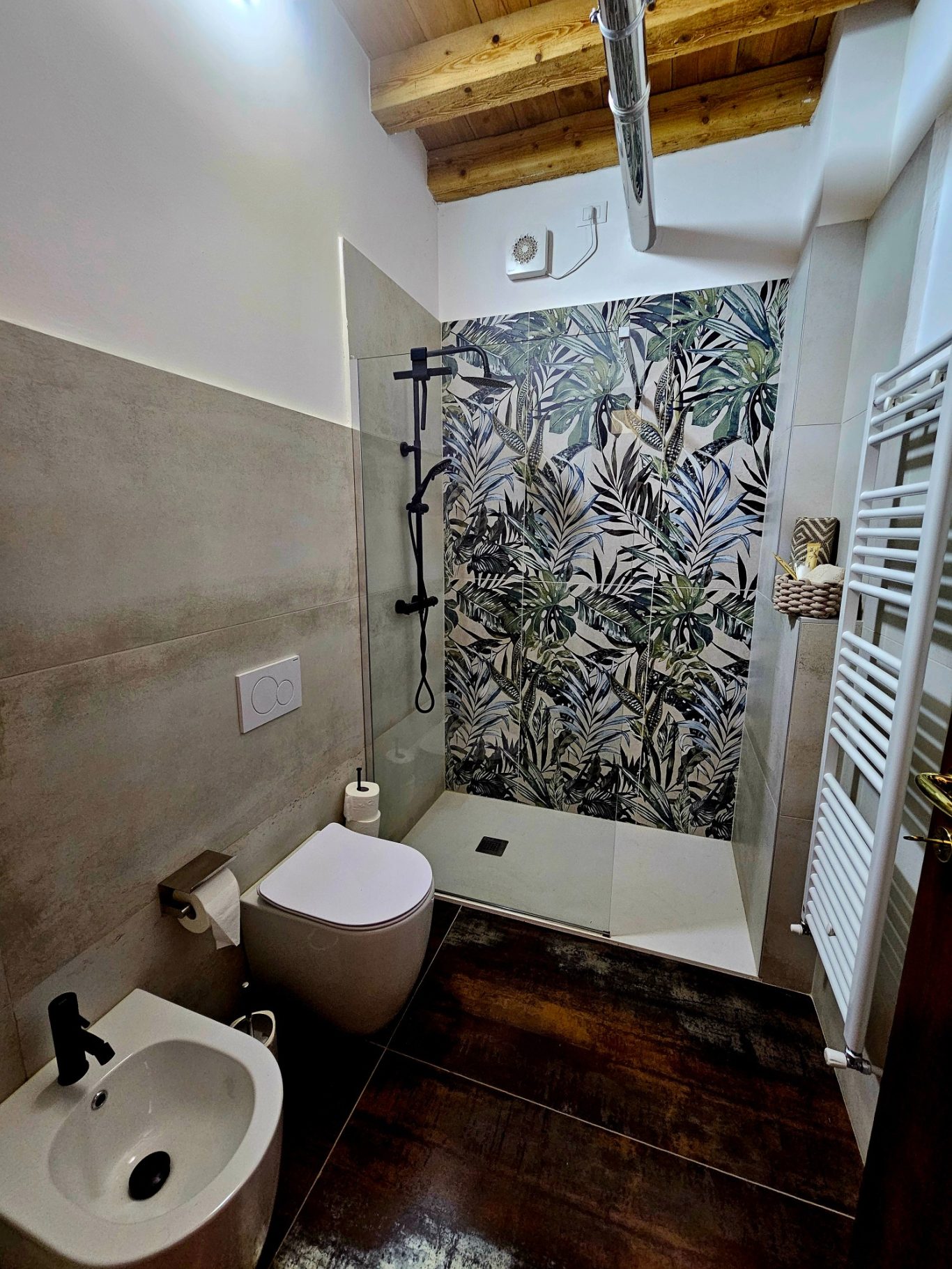 Ebenerdige Großraumdusche, WC, Bidet