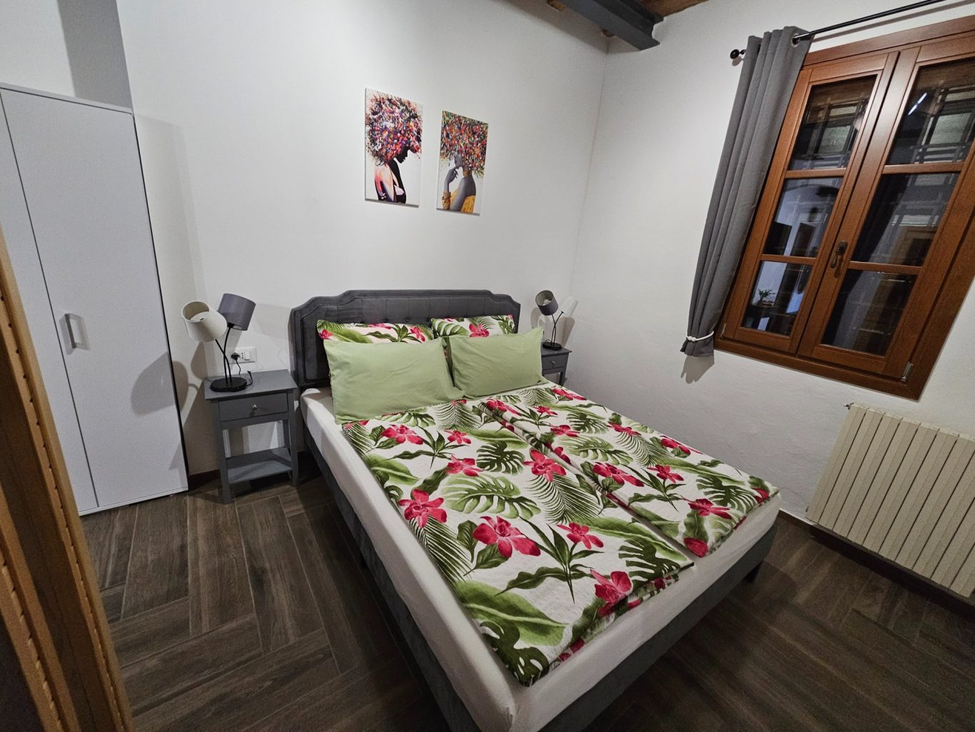 Doppelbett, Infrarotkabine, Lichtschalter und Steckdosen direkt am Bett, Fenster mit Mückenschutzrollos