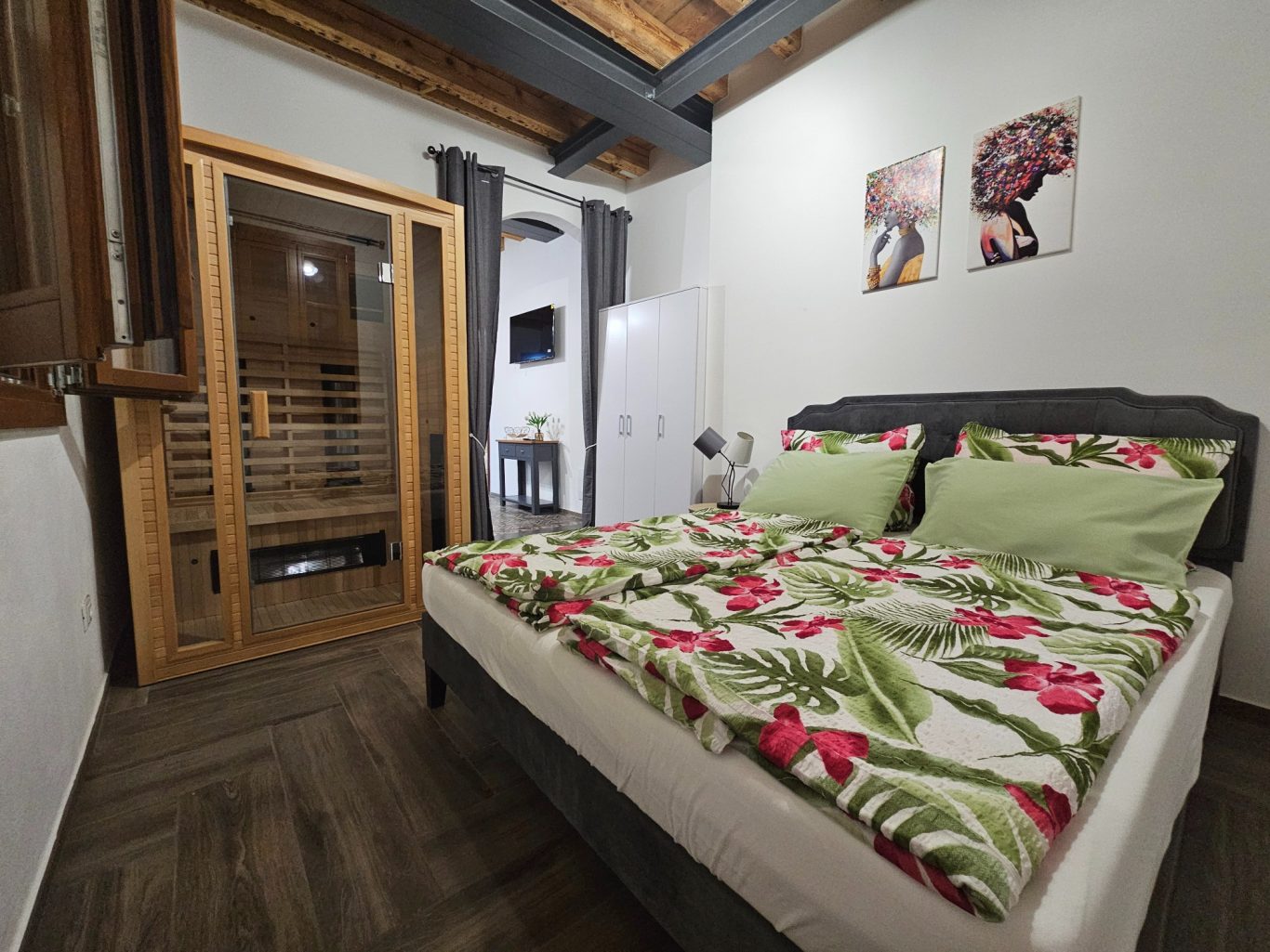 In dem Schlafraum befindet sich ein Doppelbett und eine Infratorsauna für Ihre ganz persönliche Auszeit.
